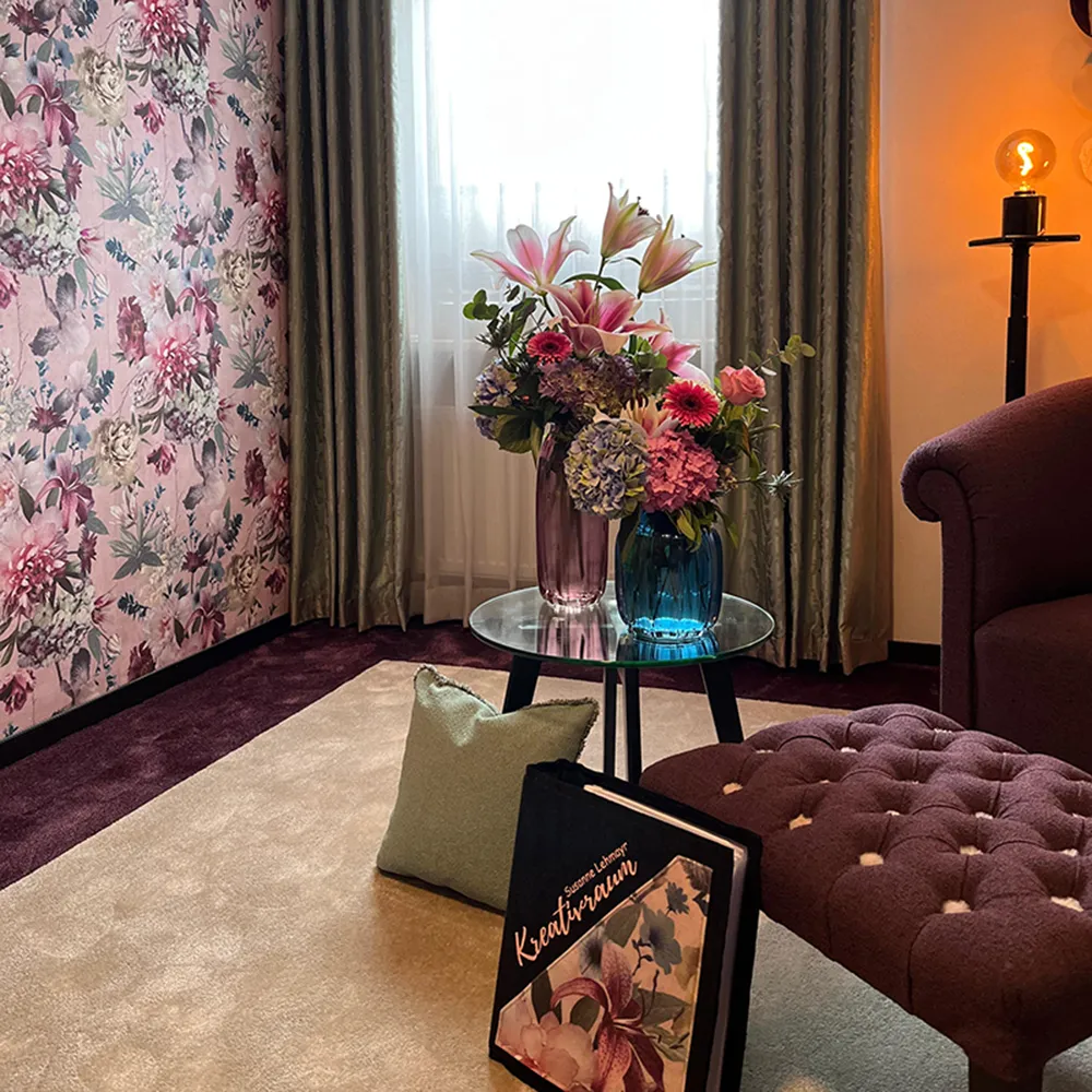 Mit viel Liebe zum Detail zeigte Susanne ihr können in allen Bereichen des Raumausstatter-Handwerks. Das Ergebnis ist ein Raum, der Kreativität, Natürlichkeit und Eleganz in perfekter Harmonie vereint – genau so, wie man es sich für eine Floristin wünscht.